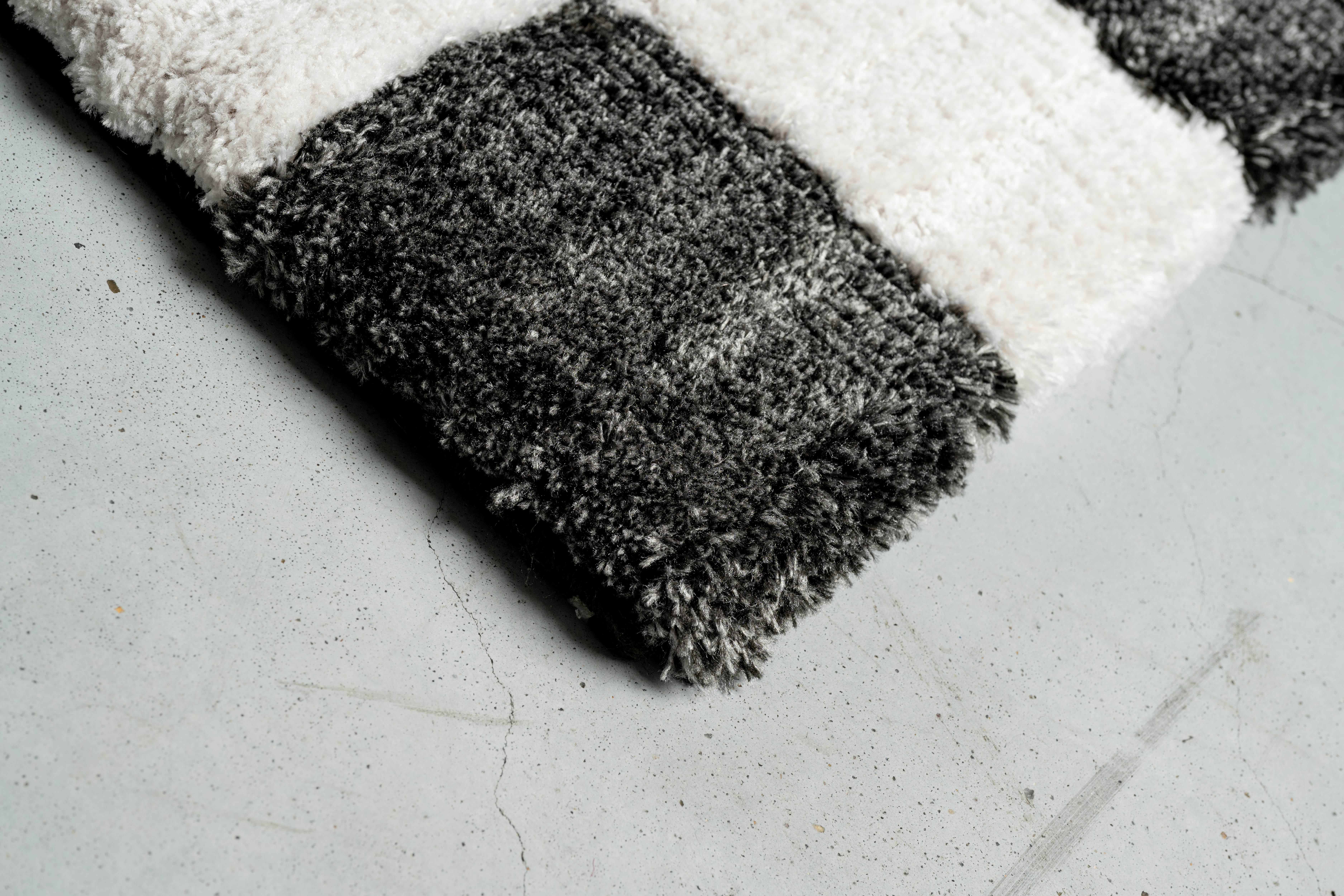 Machine Woven, Nube Collection, Contemporary, Transitional, Black, Charcoal, Ivory, Multi, White, Belgium, 1" Plush Pile Height, 100% Recycled Polyester